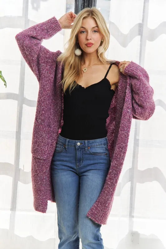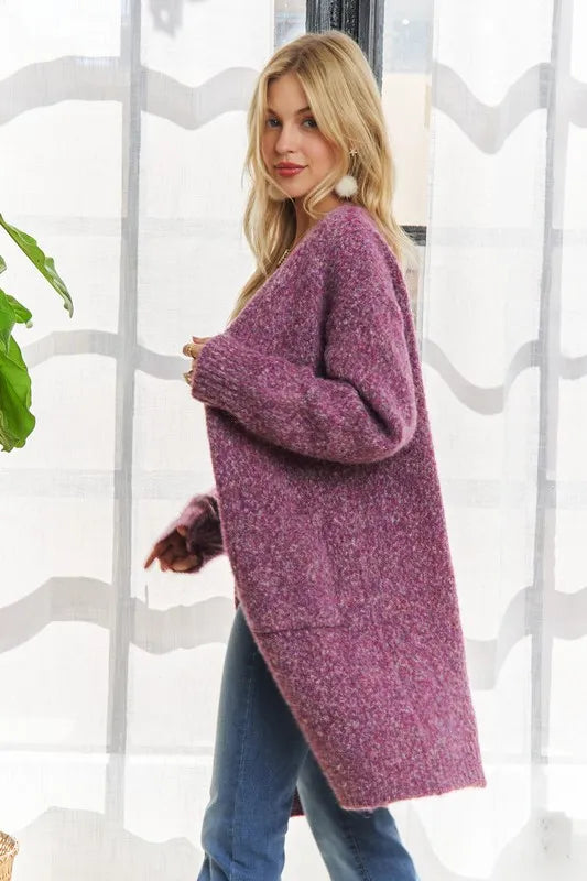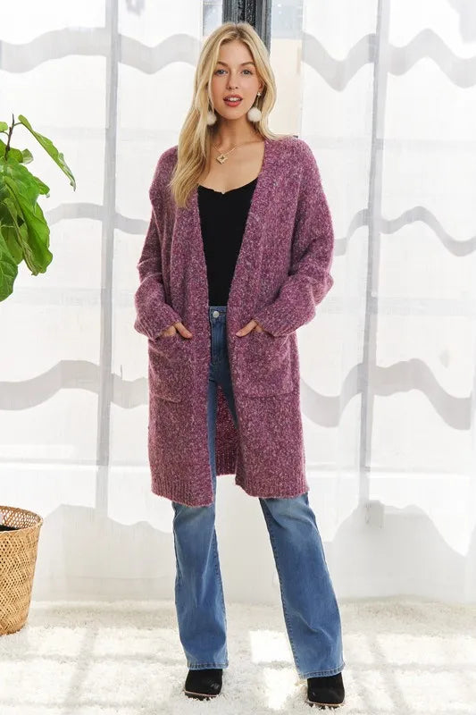 The 2 tone sweater pocket cardigan is a stylish and versatile piece featuring contrasting colors for a modern twist. With its two-tone design, this cardigan adds visual interest and sophistication to your outfit. The addition of pockets provides functionality and convenience, making it a practical and fashionable choice for layering over tops and dresses.