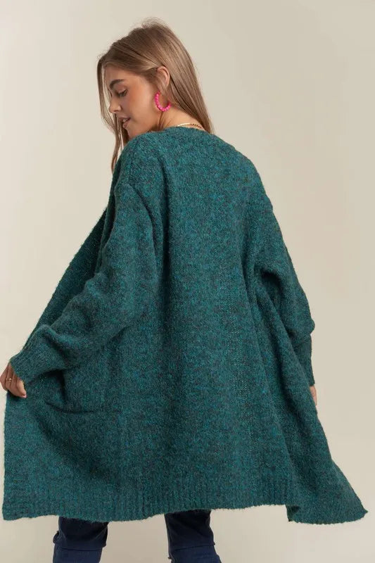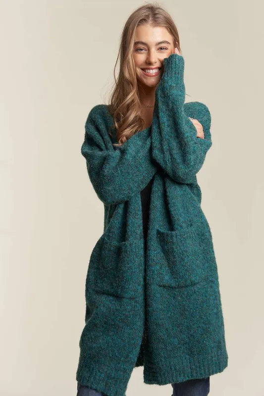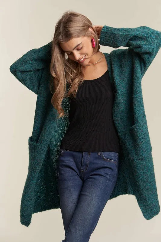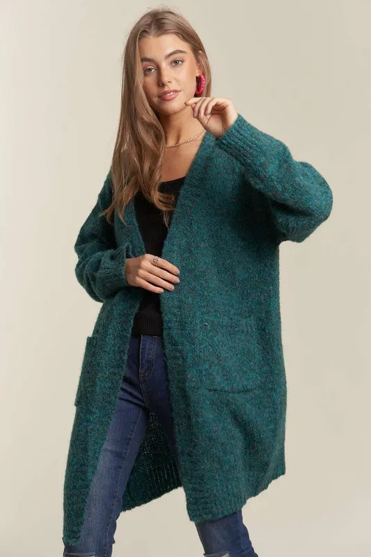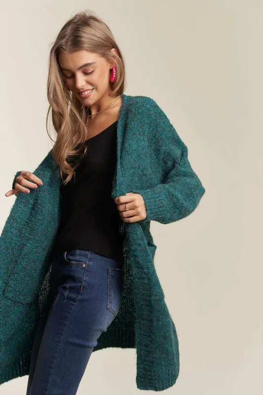 The 2 tone sweater pocket cardigan is a stylish and versatile piece featuring contrasting colors for a modern twist. With its two-tone design, this cardigan adds visual interest and sophistication to your outfit. The addition of pockets provides functionality and convenience, making it a practical and fashionable choice for layering over tops and dresses.