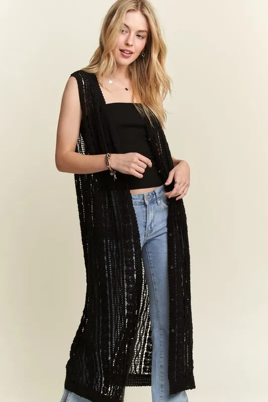 This Button Down Crochet Long Cardigan features a stylish crochet design that adds a bohemian touch to any outfit. The button-down front allows for versatile styling options, whether worn open or closed. The long length provides added coverage and creates a flattering silhouette, making it a versatile and chic wardrobe essential.