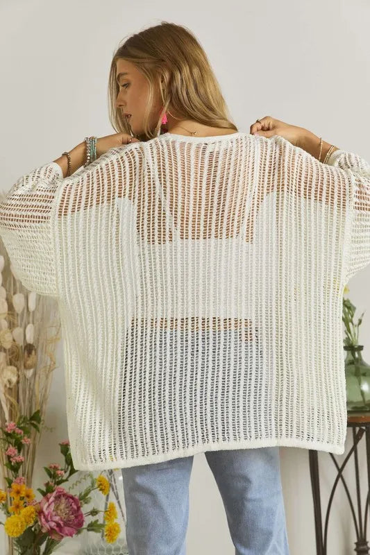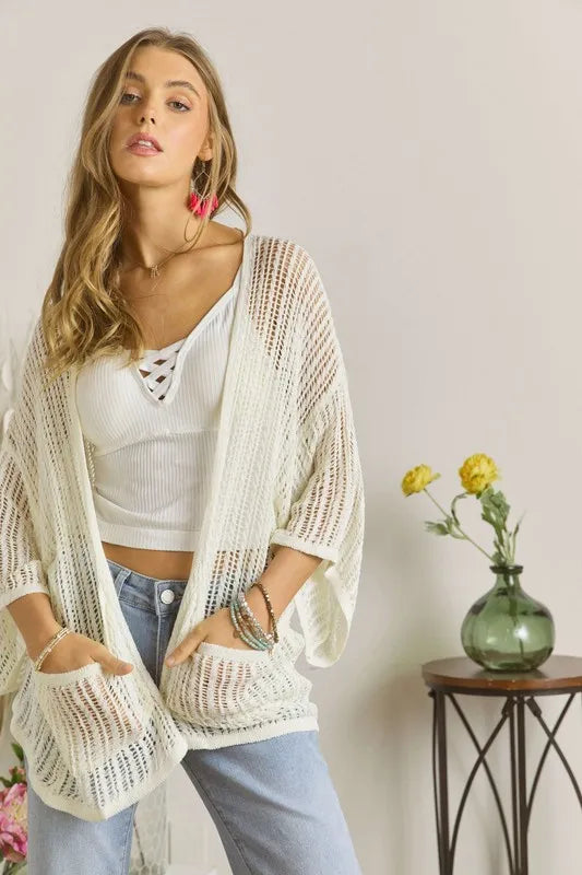 ADORA Fishnet Knit 3/4 Sleeve Cardigan