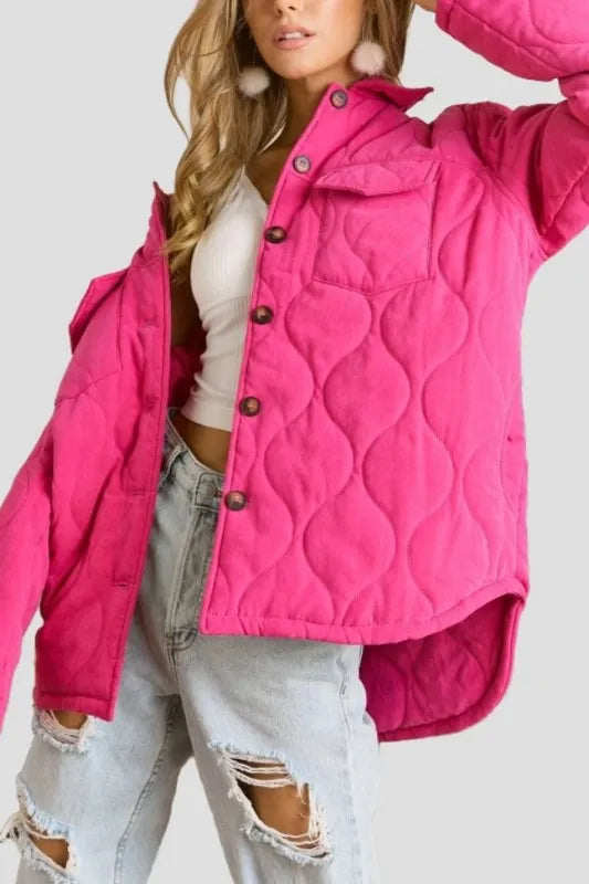 ADORA Full Size Quiled Button Down Jacket with Pockets Plus Size