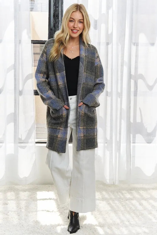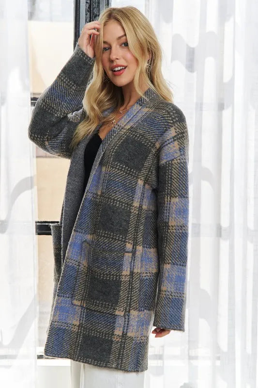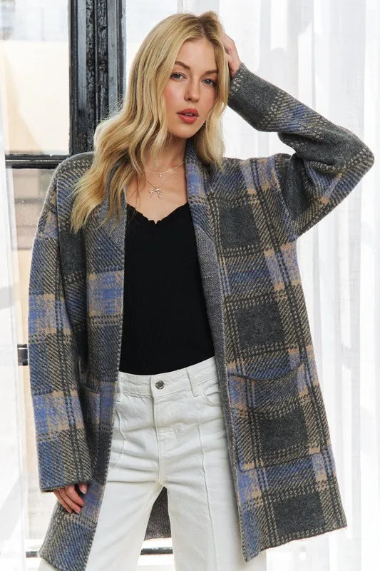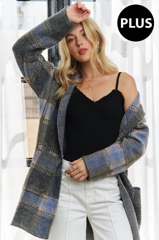 ADORA Plus Size Checked Sweater Cardigan