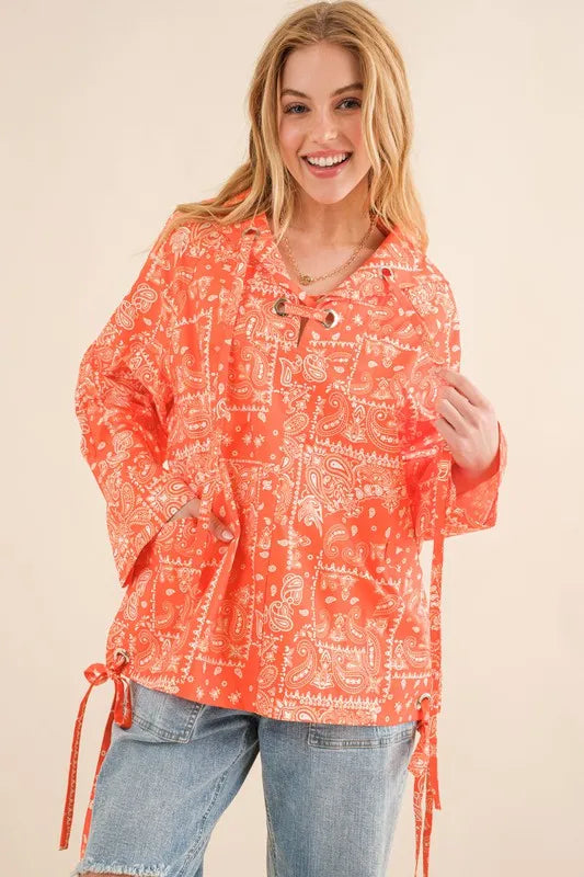 And The Why Bandana Pattern Lace Up Detailed Windbreaker