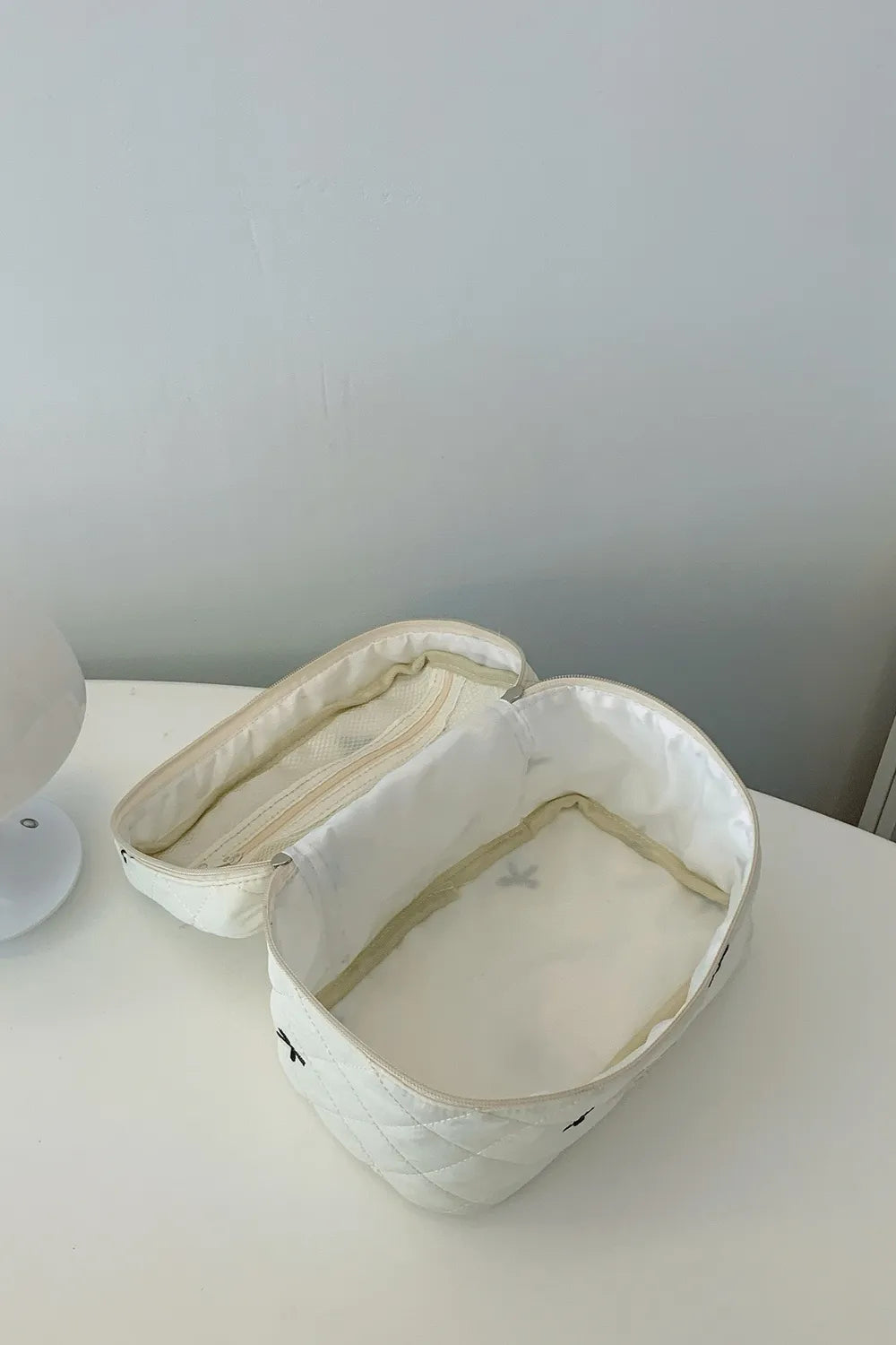 Bow Embroidered Quilted Storage Bag with Zip