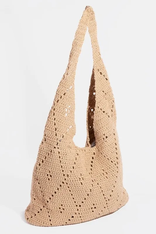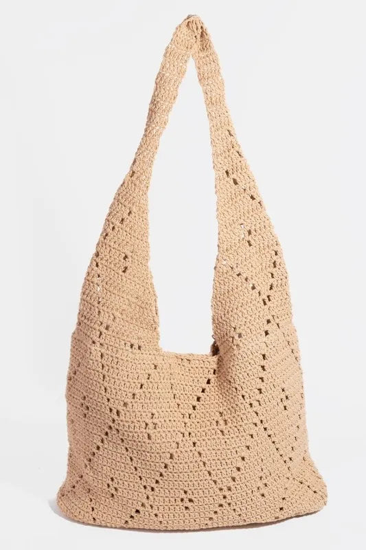 Fame Diamond Crochet Knit Hobo Shoulder Bag