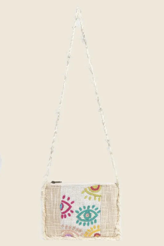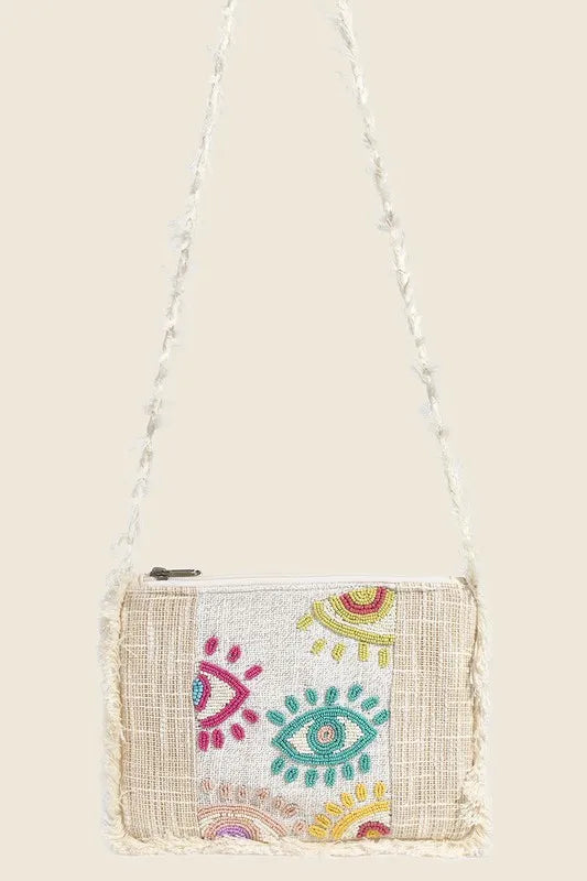 Fame Seed Beaded Eye Pattern Crossbody Bag