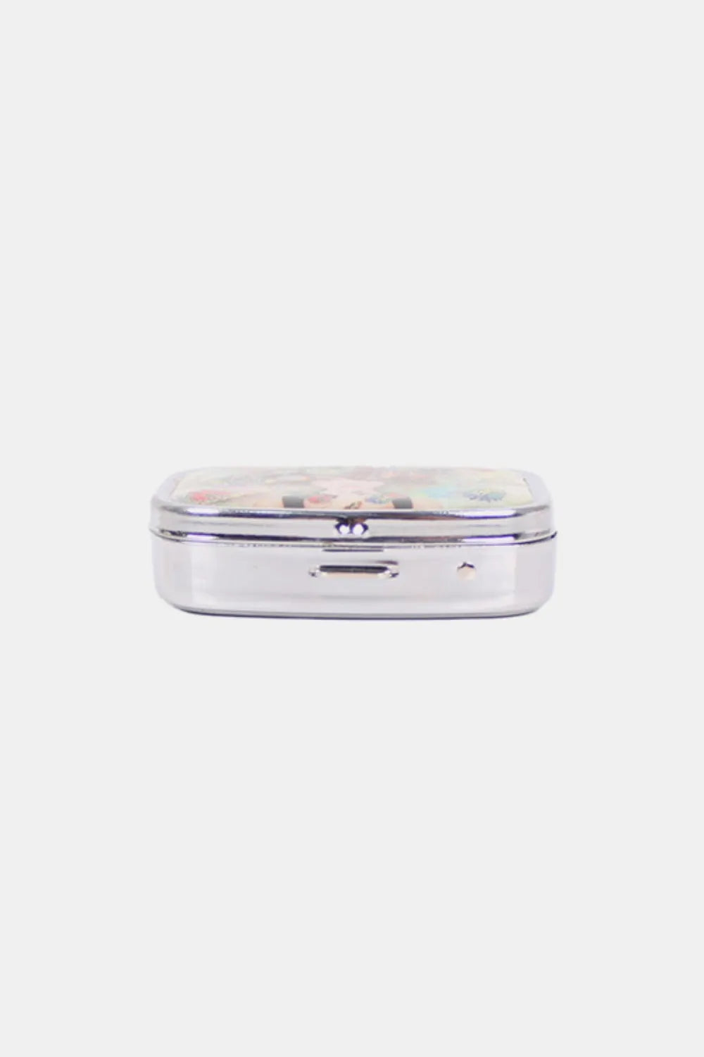 Print Metallic Rectangular Pill Case keeps pills and vitamins secured when you're away from home.