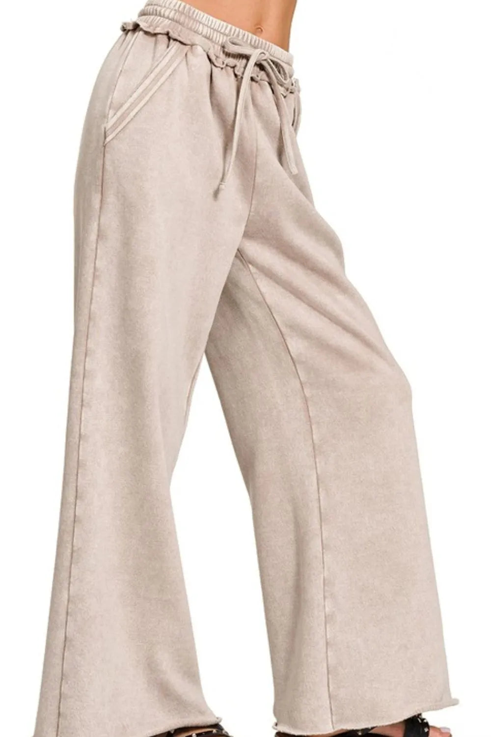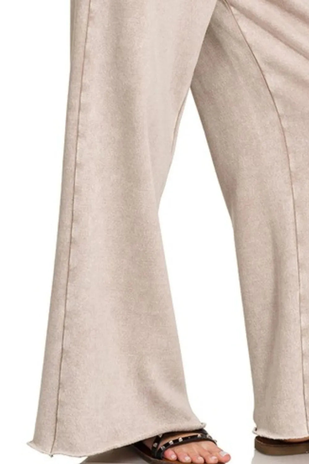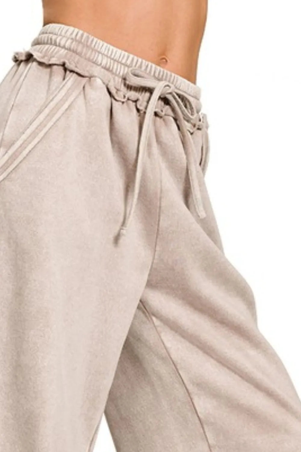 Zenana Acid Wash Fleece Palazzo Sweatpants with Pockets