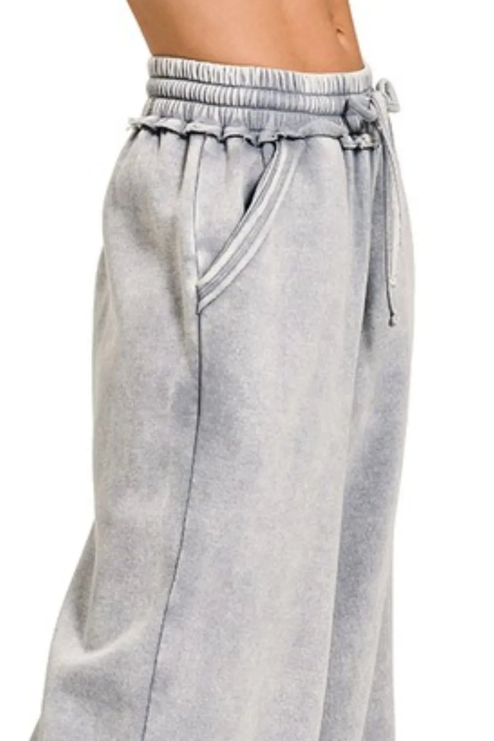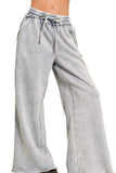 Zenana Acid Wash Fleece Palazzo Sweatpants with Pockets