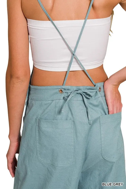 Woven spaghetti strap overalls are a stylish and versatile wardrobe piece that offers a playful and casual look. The spaghetti straps add a feminine and summery touch to the classic overall silhouette. These overalls are typically made from a light and breathable woven fabric, making them perfect for warm weather. The adjustable spaghetti straps allow for a customized fit, and the overall design provides a relaxed and effortless vibe. Woven spaghetti strap overalls can be styled with a variety of tops underneath, such as a t-shirt, tank top, or crop top, and can be paired with sandals or sneakers for a cute and laid-back outfit. They are a fun and trendy choice for those looking to add a touch of charm to their wardrobe.